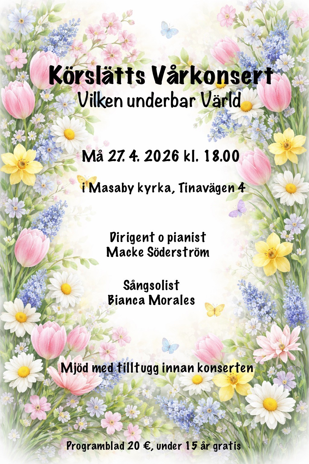 Gästartister denna gång var kyrkslättborna Maria och Tom Höglund som sjöng tre vackra sånger. Dessutom verkade de som solister tillsammans med kören.