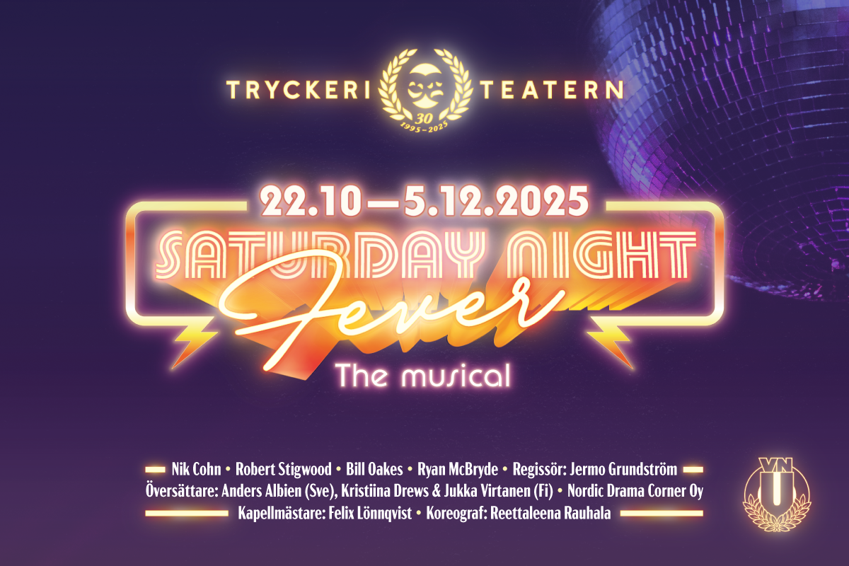 Svenska Teatern (Amos A),  Oskars Teatern (Trassel)  Tryckeriteatern (Saturday Night Fever)
